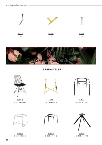 www.kayamakinametal.com K-733 K-734 K-735 Y 42 Y 20 Y 20 SANDALYELER K-800 K-801 K-802 G 45 | D 45 | Y 90 G 45 | D 45 | Y 38 G 50 | D 50 | Y 40 K-804 K-805 K-809 G 45 | D 45 | Y 40 G 45 | D 45 | Y 40 G 45 | D 45 | Y 40 16