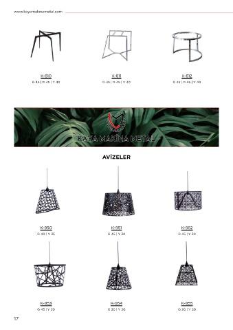 www.kayamakinametal.com K-810 K-811 K-812 G 45 | D 45 | Y 40 G 45 | D 45 | Y 40 G 45 | D 45 | Y 40 AVİZELER K-950 K-951 K-952 G 40 | Y 35 G 45 | Y 30 G 45 | Y 30 K-953 K-954 K-955 G 45 | Y 30 G 30 | Y 30 G 30 | Y 30 17
