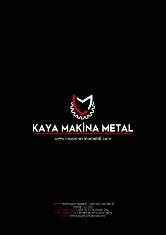 www.kayamakinametal.com Adres : Mahmudiye Mahallesi Kalender Cad. No:41 İnegöl / BURSA GSM (Üretim) : 0 532 711 73 74 (Kadir Bey) GSM (Mağaza) : 0 536 663 99 09 (Seçkin Bey) Email : info@kayamakinametal.com 20